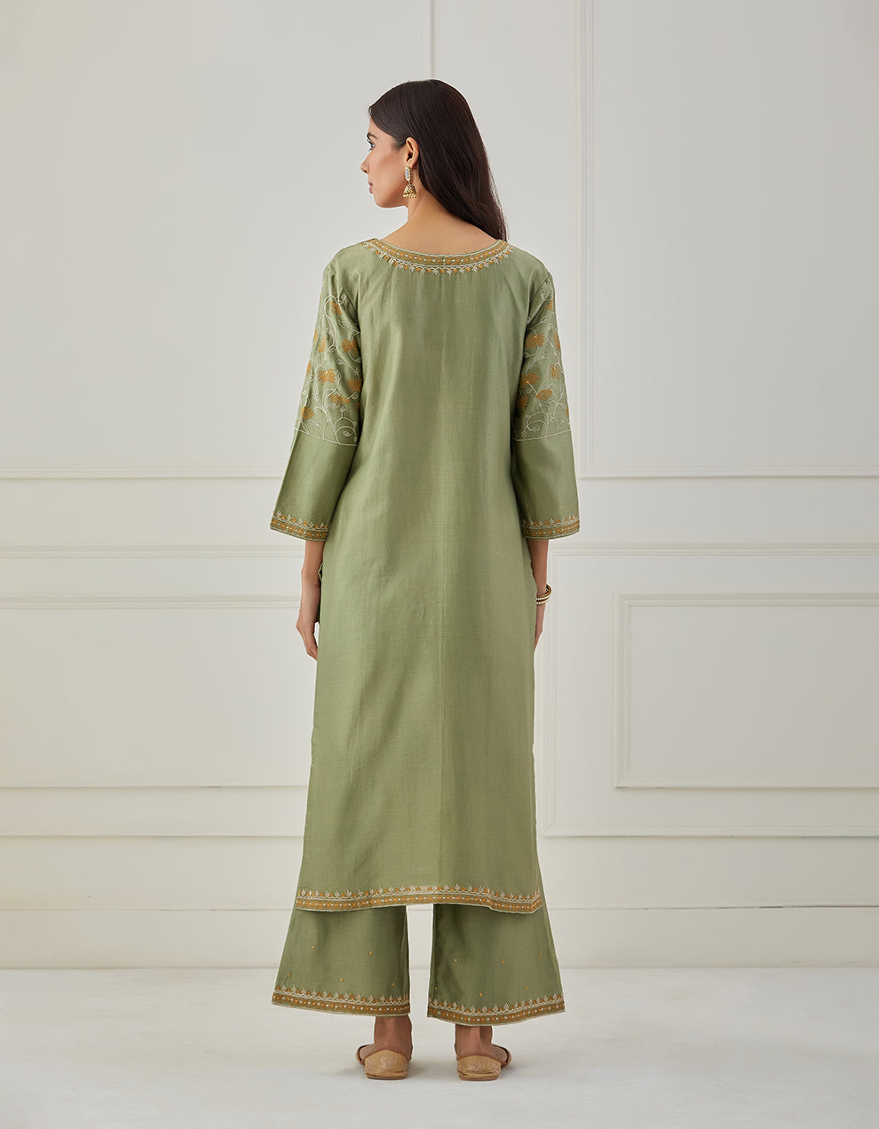 "Dupatta," once considered a symbol of modesty and femininity, gets an all-new touch with the "Bandhan collection." Presenting a beautiful dupatta that can be accessorized to elevate any ethnic wear look, this green dupatta enjoys refined details. Made from the finest chanderi silk fabric, the dupatta flaunts a sheen finish, a scalloped cut, and minimal sequin work done with utmost precision. Pair it with your favorite ensemble and add a more elegant appeal to your festive look. Make it yours now!