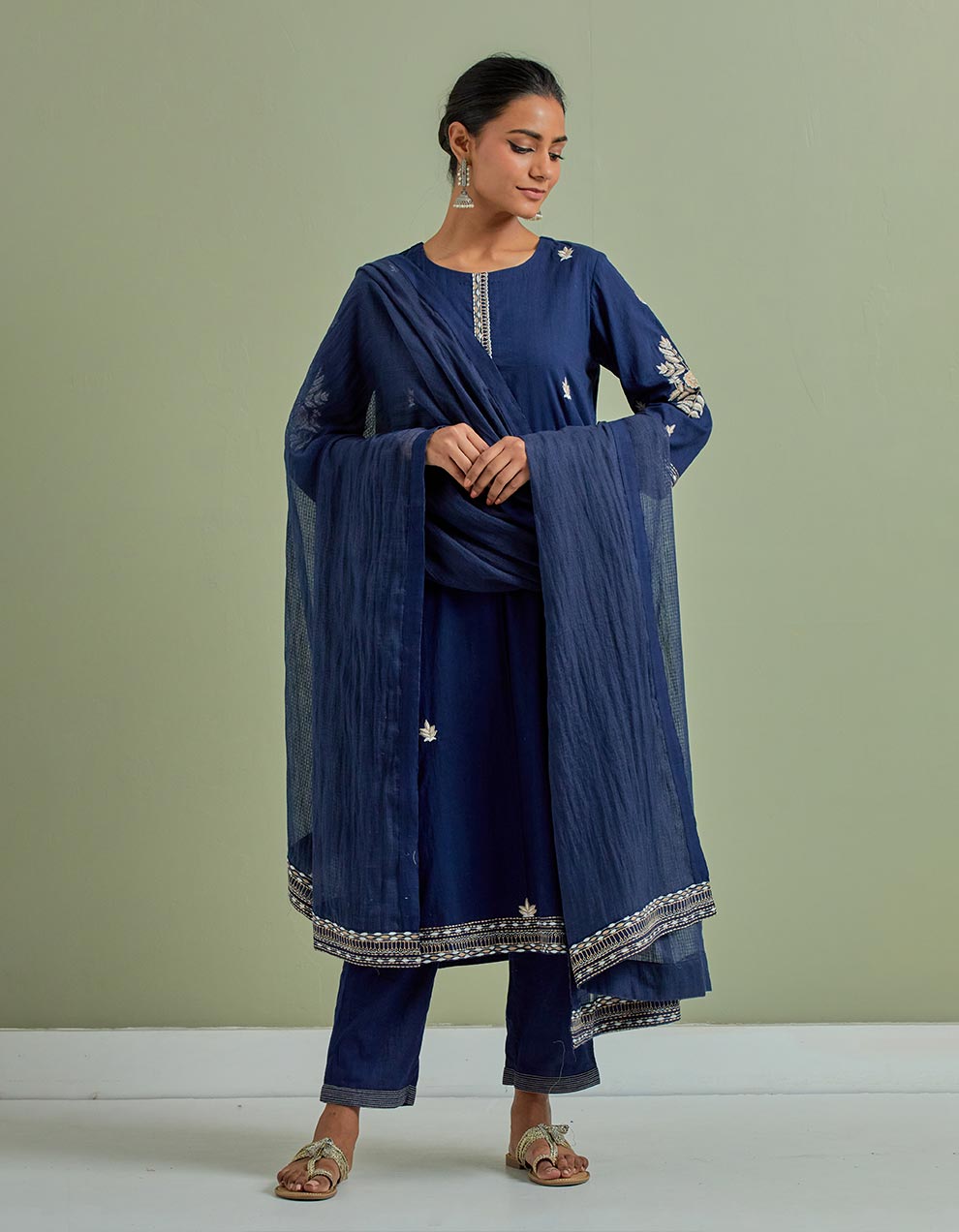 To make your outfit look new and exciting every time you wear it, all you need is a dupatta that adds colour and style to your fit. Being a perfect compliment to the definition of a dupatta, this piece even elevates its beauty to leaps and bounds. With the beautiful thread work at the hemline, this graceful and flowy blue dupatta will instantly take your ensemble and style quotient up a notch. So what are you waiting for? Add the ethnic touch your outfit is missing with an extra pinch of elegance and beauty to it. Shop for this odhani/dupatta now!