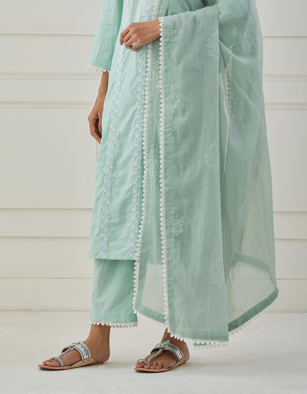 Redefining elegance and class, here is a dupatta you need to add to your ethnic ensemble wardrobe. Being something that’s both festive and fun, this green dupatta enjoys intricate lace details tucked at the sides of its border. The beautiful block prints done on the bed of the finest cotton fabric sets a tone apart for the piece while tucking to the ancient Indian history. Shop this stunner now!