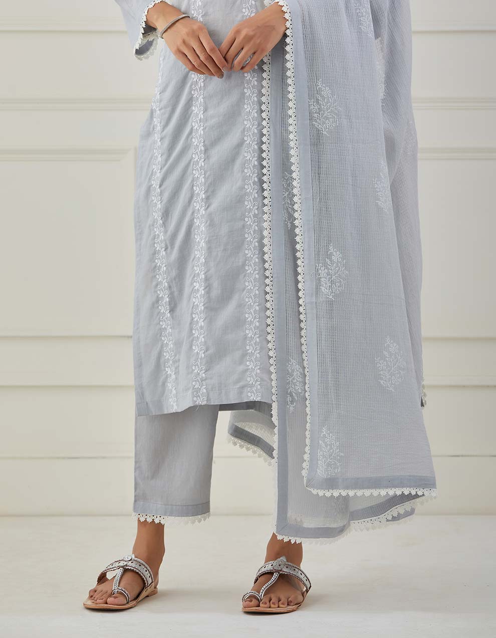 Redefining elegance and class, here is a dupatta you need to add to your ethnic ensemble wardrobe. Being something that’s both festive and fun, this grey dupatta enjoys intricate lace details tucked at the sides of its border. The beautiful block prints done on the bed of the finest cotton fabric sets a tone apart for the piece while tucking to the ancient Indian history. Shop this stunner now!