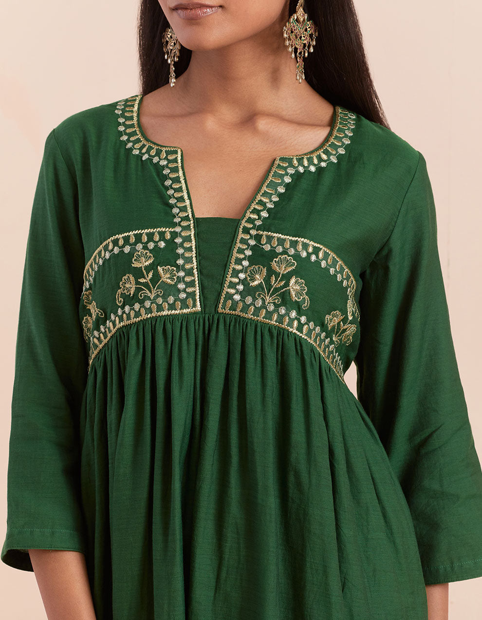 Crafted from the softest chanderi, our brown kurta is a silhouette of serene sophistication. Embellished with age-old zari artistry, every twist and turn of the golden and silver thread casts a spell of elegance on a blank chanderi canvas. Featuring a v-neck with a flowy silhouette, this kurta is a perfect blend of comfort and celebratory charm. Pair this kurta with matching pants and an embellished dupatta to complement your celebrations.