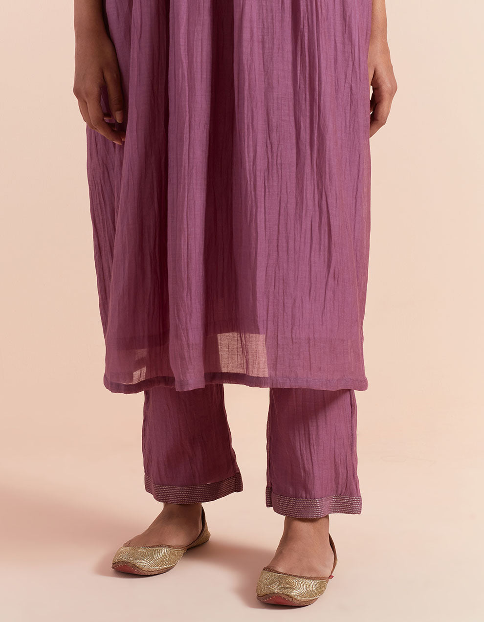 - Pant- Purple soft chanderi pant, back elasticated waist.
