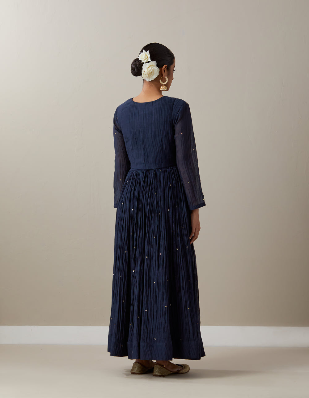 Wrap yourself in timeless anarkali, where the opulence of chanderi meets the ethereal elegance of golden embroidery. Each golden stitch and sequin adds a touch of tradition to your celebrations with its luminous glow. Every fold whispers a tale of heritage, artistry, and expert craftsmanship. Dipped in rich hues and adorned with classic paisley motifs, our kurta set delicately blends artistry and grace to elevate all your festivities.
