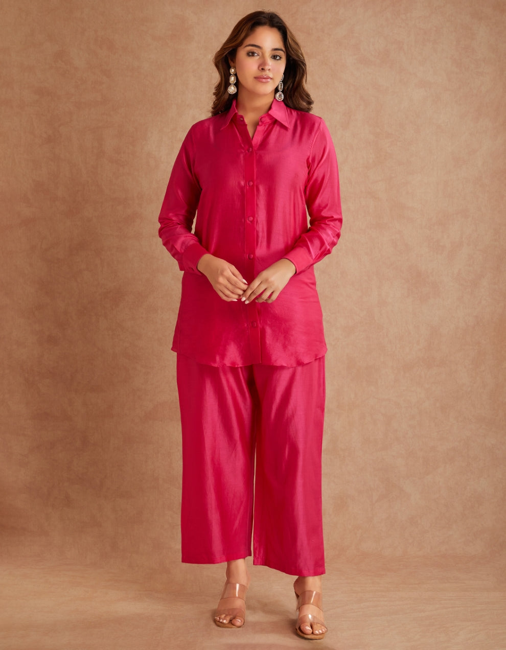 Magenta embroidered chanderi kurta with cotton pants and chanderi dupatta- Set of 3