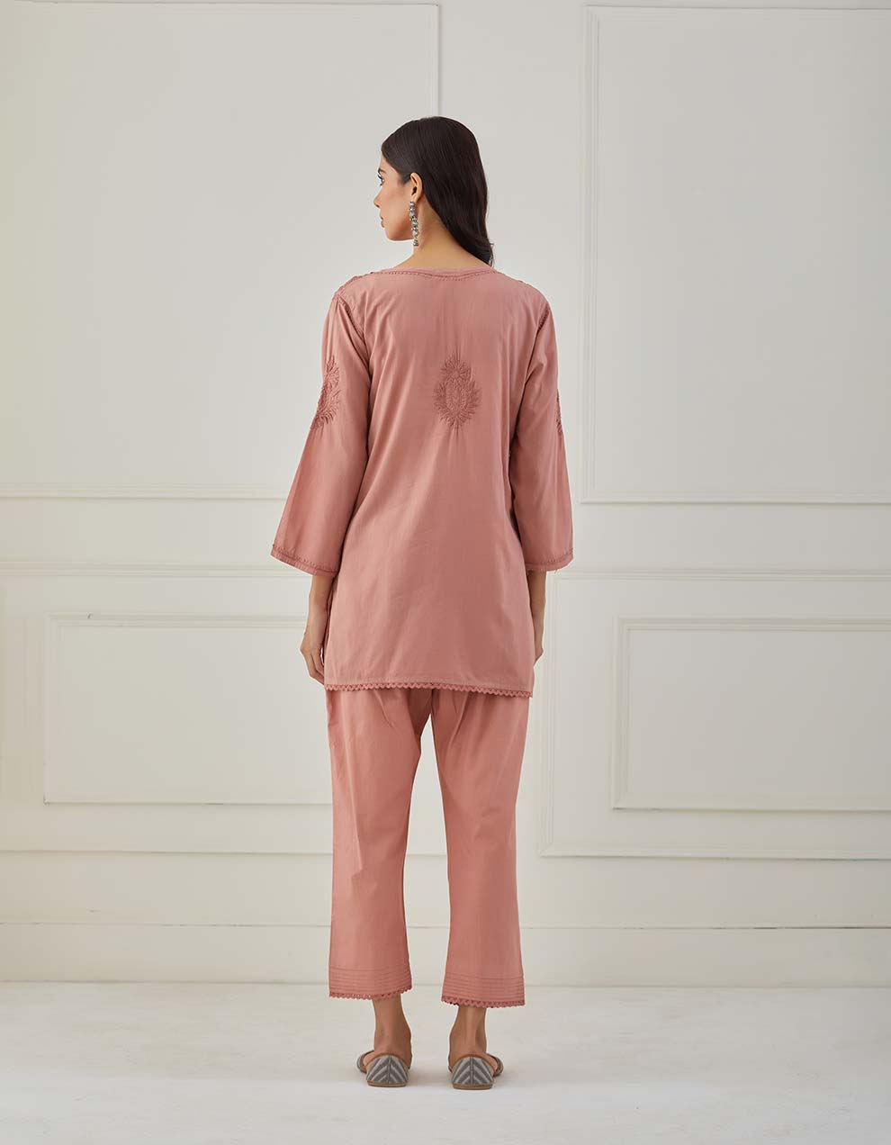 Old rose chikankari cotton kurta with pants
