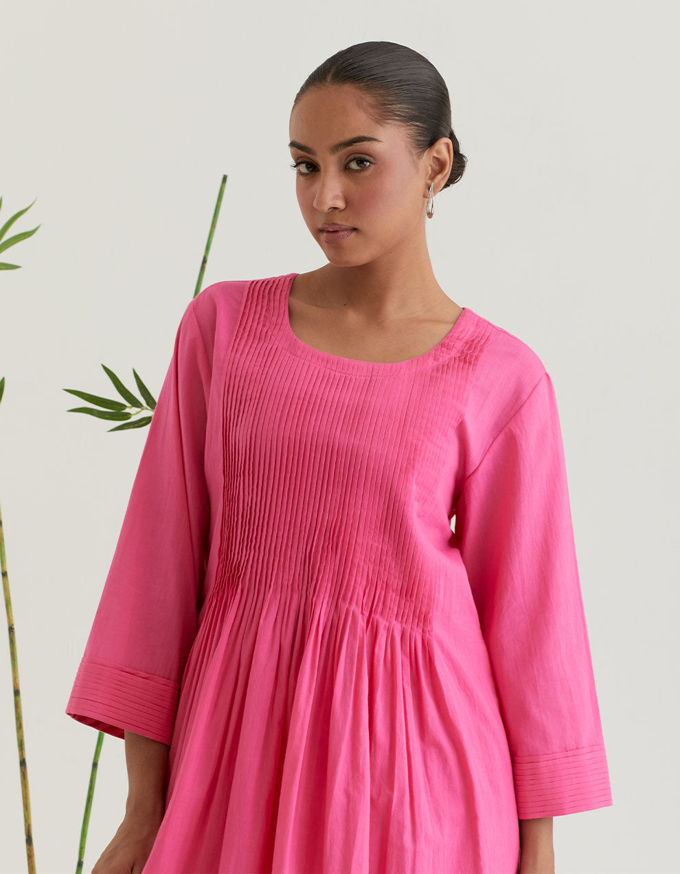 Pink pintuck cotton kurta