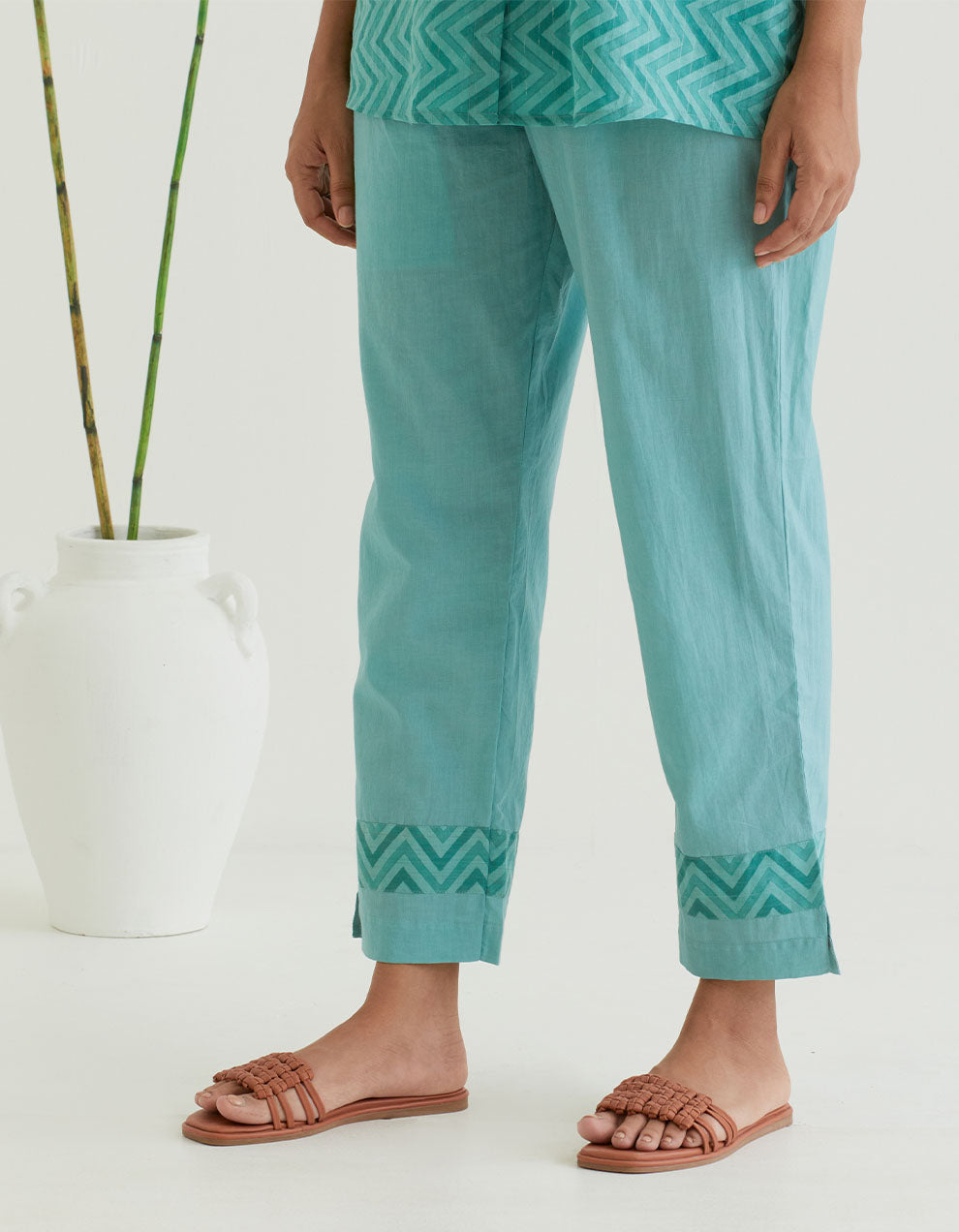 Green cotton pants