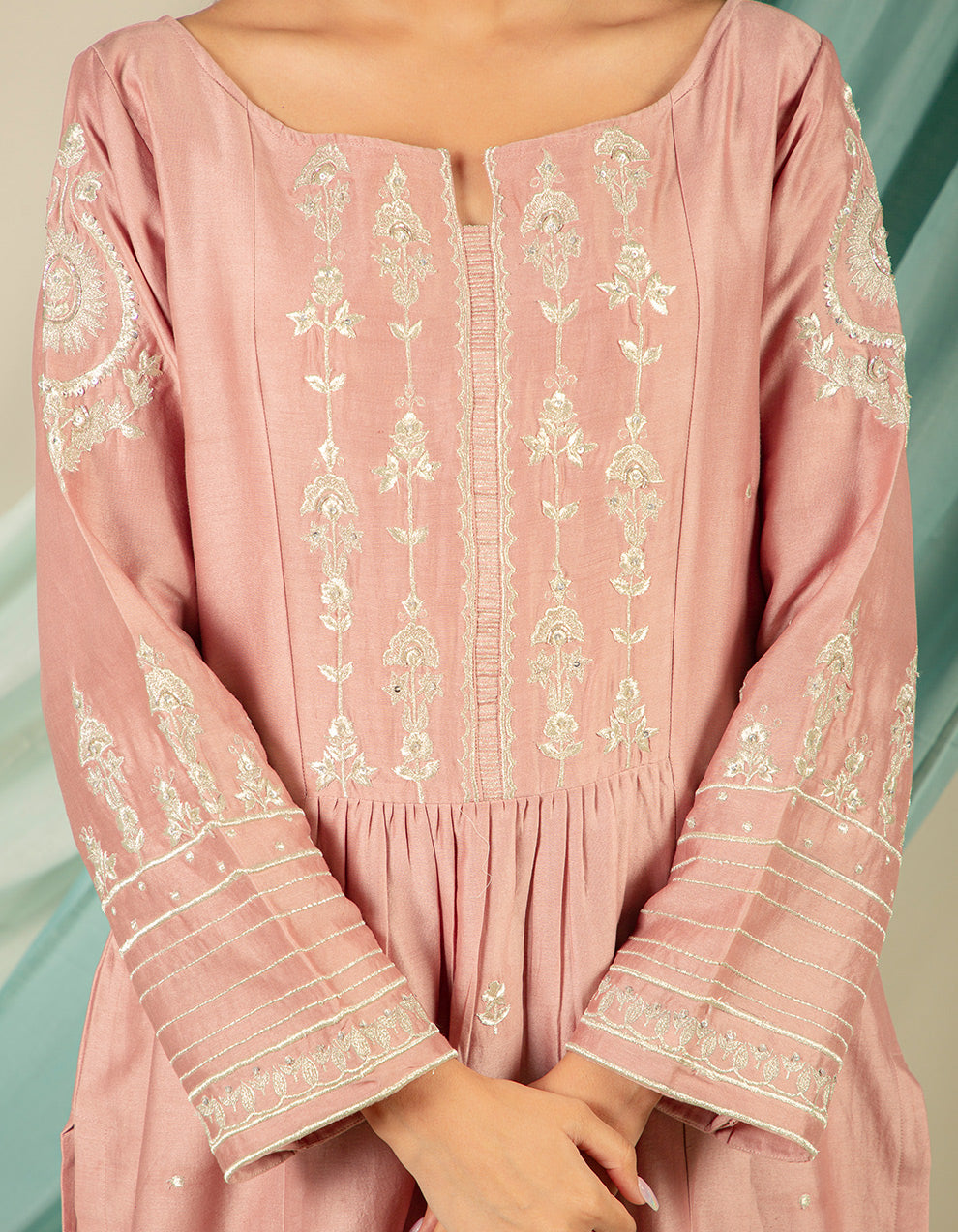 This is a very gorgeous embroidered dust pink Chanderi silk kurta. It is made with perfection and precision. The hand-embroidered Chanderi silk kurta perfectly depicts the traditional Indian ethnic wear. Its embroidery work is an example of skilled craftsmanship and attention to detail. The entire kurta is adorned with gold motif embroidery that changes the expectation to reality.