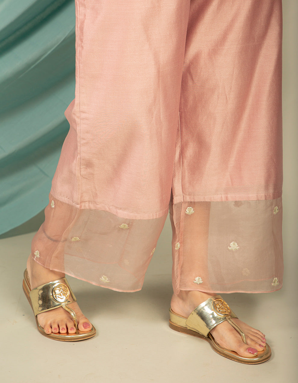 These dust pink embroidered Chanderi silk pants are made from the softest materials to give you the feeling of supreme comfort. You will adore the breathable fabric meant for a very comfortable fit. The dust pink colour makes it ideal for adding any other top or Kurta for the perfect combination. If you are unclear on what to wear with it, we have a dust pink Chanderi silk kurta waiting for you.