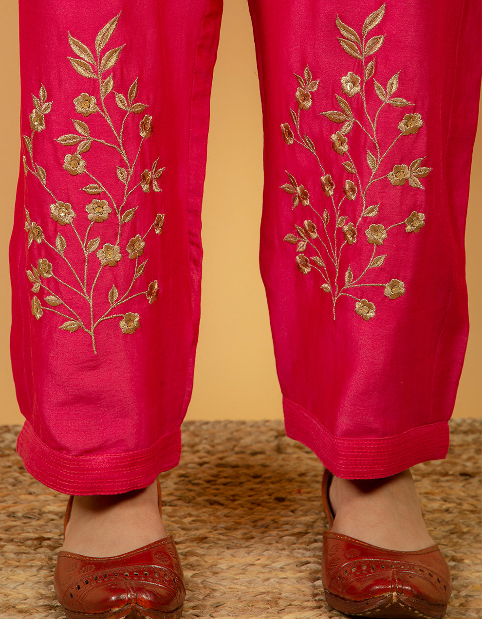 Pink chanderi silk pants